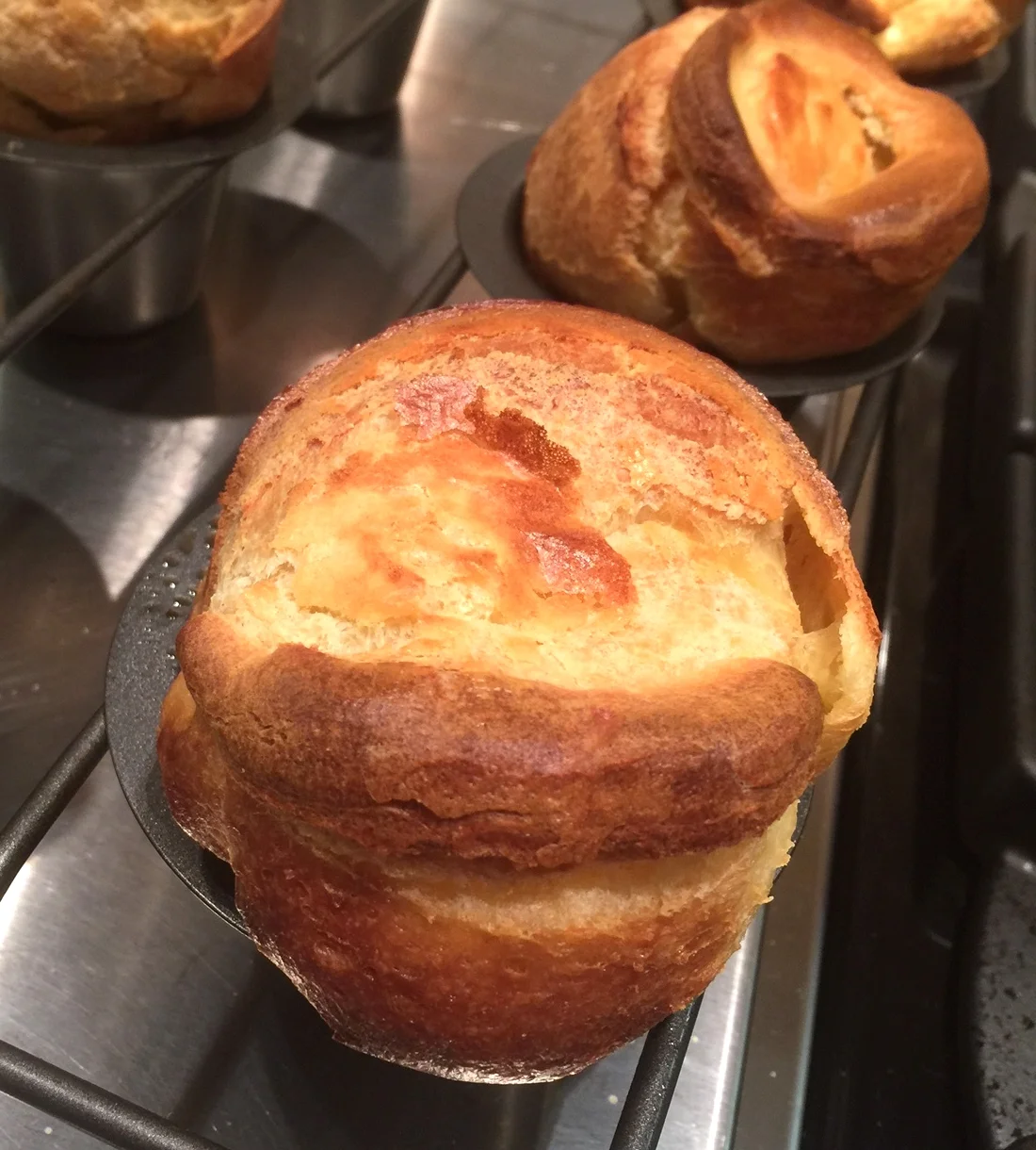 MAKE AHEAD: For crisper popovers, remove them to a rimmed baking sheet where they can be held uncovered for up to 4 hours. Before serving, reheat at 450° for 3-5 minutes or until hot and crispy.