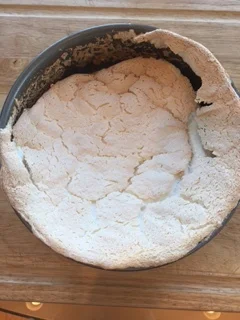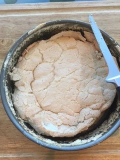 Baked torte will rise and fall leavinge crusty pieces around the sides.