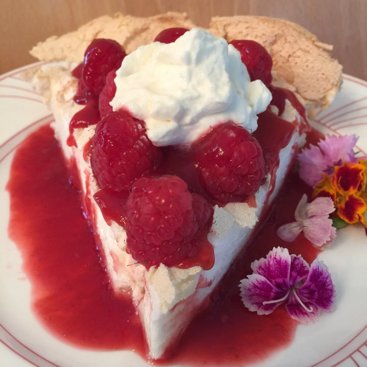 Set It & Forget It Meringue Torte with Fresh Raspberry Sauce