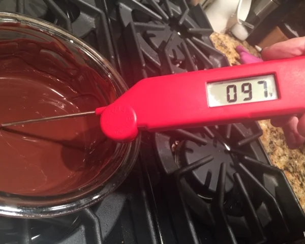 8 oz. milk, semi-sweet or bitter sweet chocolate (60% cacao), melted and cooled to between 85 and 100 degrees