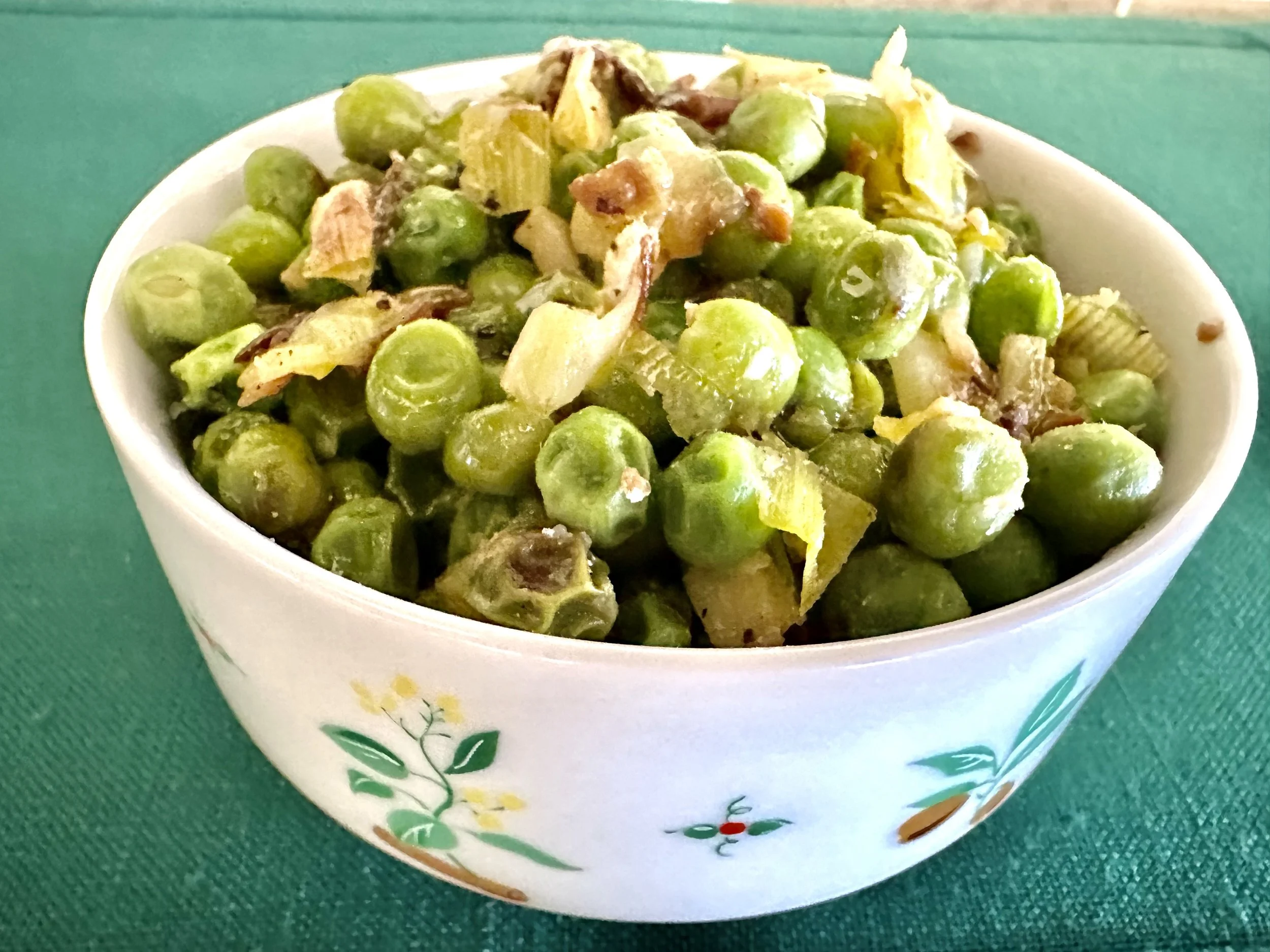 I never knew peas were controversial until I served these. My guests were overwhelmed with how good they were and many professed they never liked peas. I was stunned. What’s there not to like abut a simple pea? These peas took center stage and pushed the rest of the dinner, which was terrific, to supporting players.