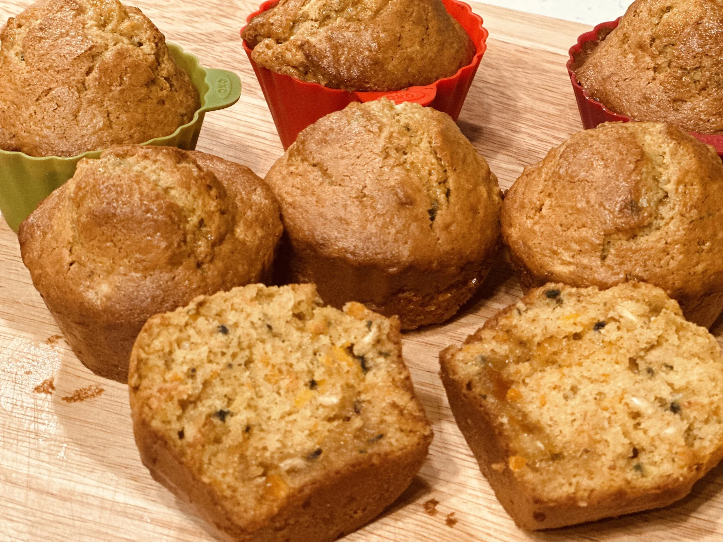 “These tender muffins are like mini-not-too-sweet carrot cakes, with a drop of of marmalade tucked into the center of each one. “ That is how the recipe was eloquently described when I received it on-line from the NYT.