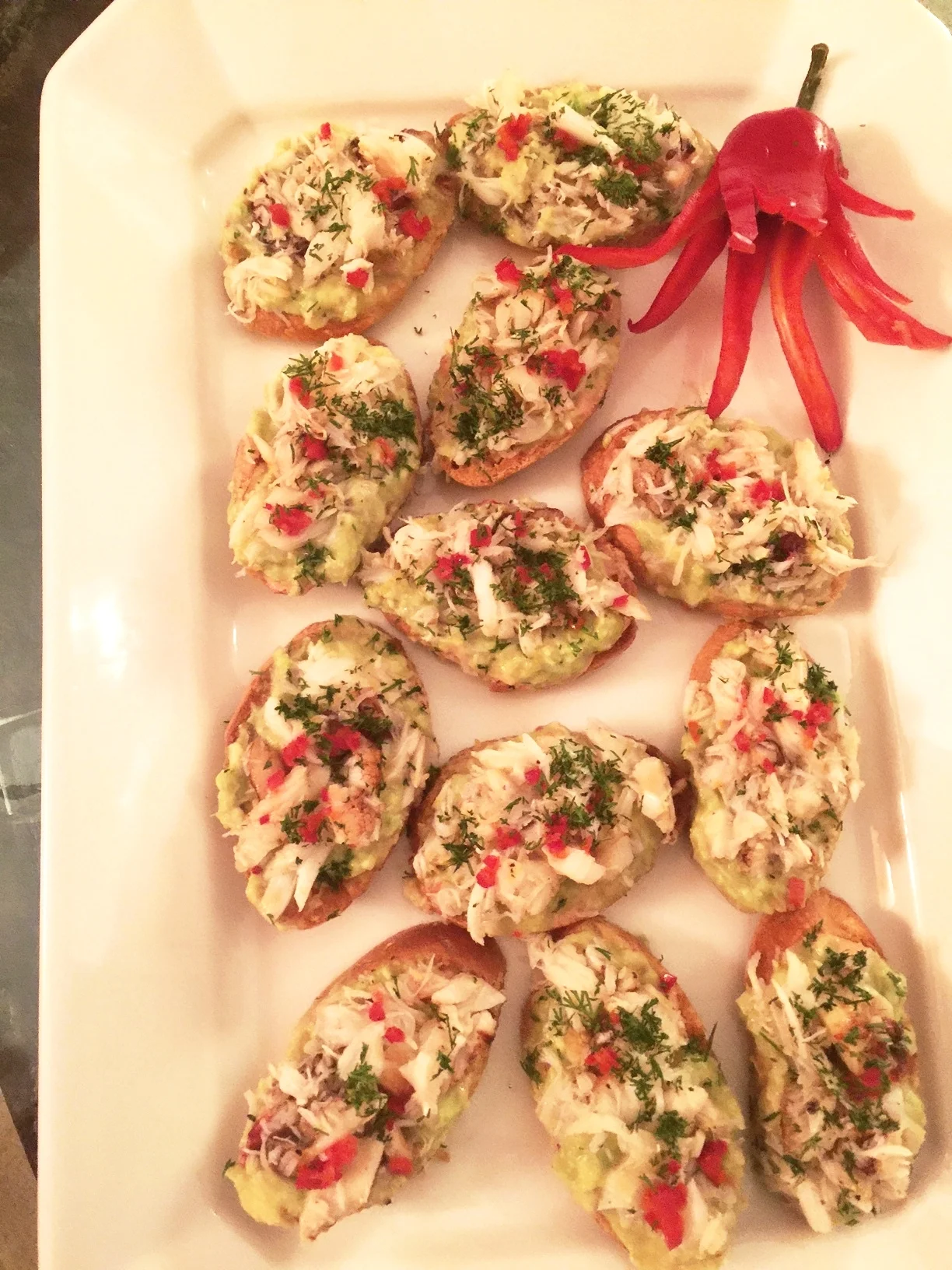 Crab Toasts with Smashed Avocado and Bloody Mary Aïoli